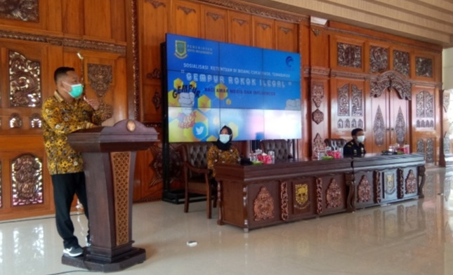 Dinas Komunikasi dan Informasi (Diskominfo) Kota Mojokerto mengadakan sosialisasi ketentuan di bidang cukai hasil tembakau bagi awak media dan influencer Kota Mojokerto, di Sabha Kridatama Rumah Rakyat Jalan Hayam Wuruk No. 50 Kota Mojokerto, Kamis (19/8/2021) pukul 10.00 WIB.