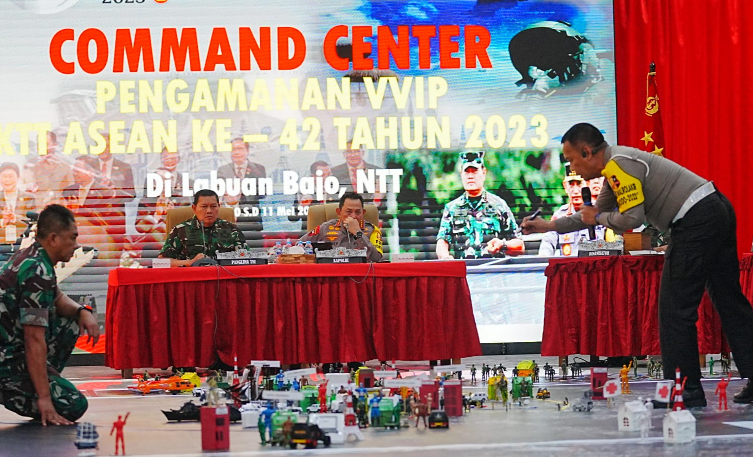 TNI-Polri melaksanakan Apel Gelar Pasukan terkait pengamanan penyelenggaraan Konferensi Tingkat Tinggi (KTT) ASEAN di Labuan Bajo, Nusa Tenggara Timur (NTT). Kegiatan itu dipimpin langsung Panglima TNI Laksamana Yudo Margono dan Kapolri Jenderal Listyo Sigit Prabowo.