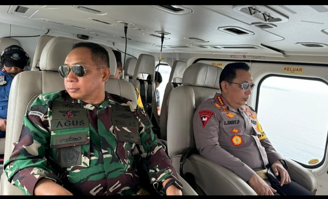 Kapolri Jenderal Listyo Sigit Prabowo dan Panglima TNI Jenderal Agus Subiyanto melakukan patroli udara menggunakan helikopter menuju Pelabuhan Gilimanuk, Kamis (4/4/2024).
