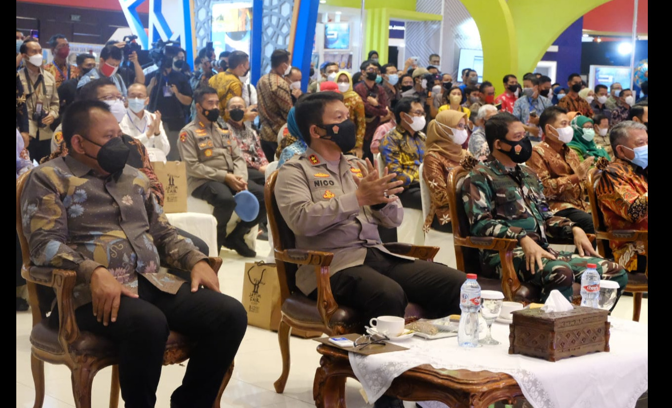 Gubernur Jawa Timur Khofifah Indar Parawansa, Pangdam V Brawijaya Mayjend TNI Suharyanto, Kapolda Jatim Irjen Pol Nico Afinta bersama Pejabat Utama Polda Jatim mengikuti serangkaian opening ceremony Jatim fair yang dihelat di Grand City Surabaya, pada 8 sampai dengan 12 Oktober 2021.