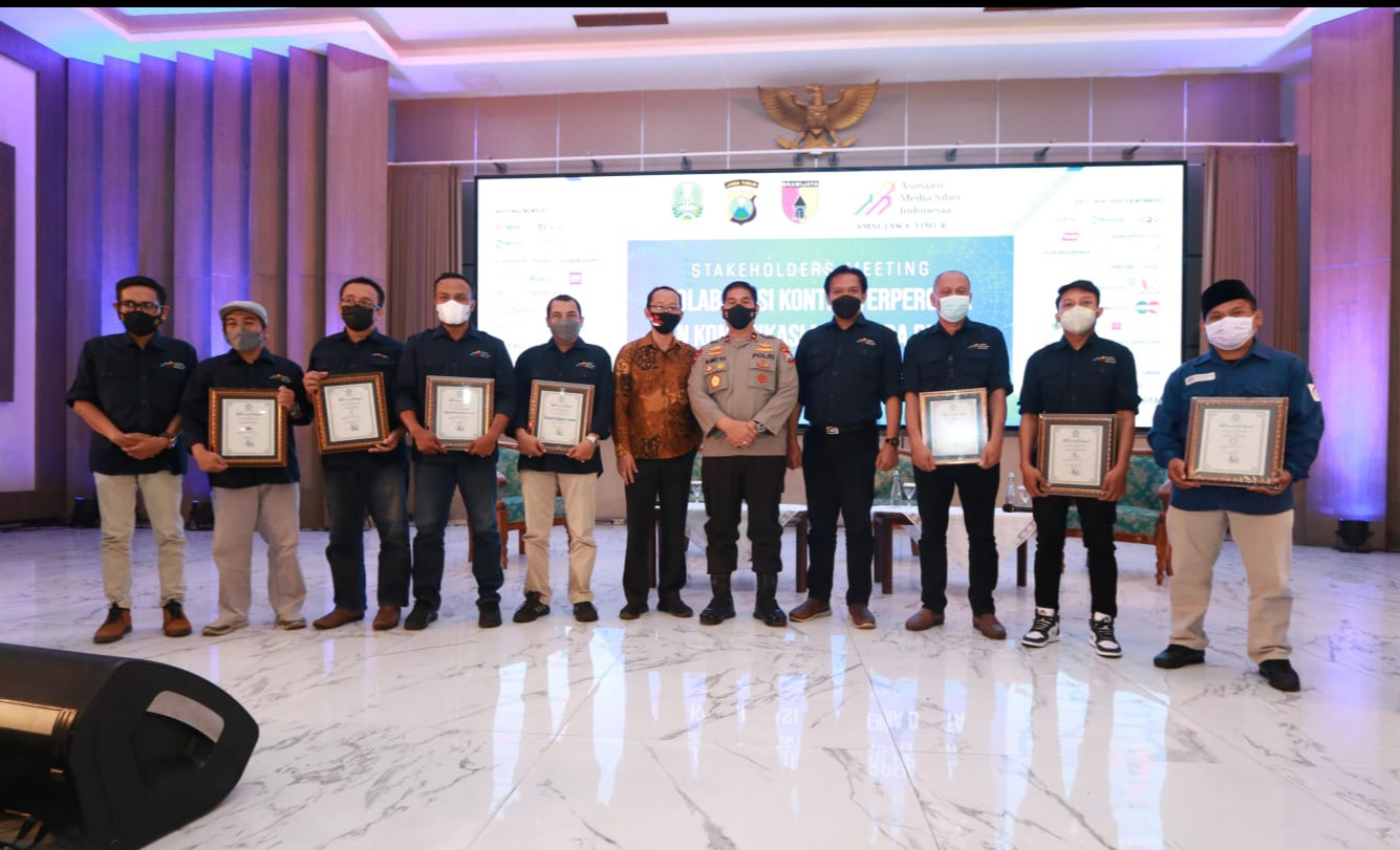 Asosiasi Media Siber Indonesia (AMSI) Jatim bekerjasama dengan Polda Jawa Timur, Senin (20/12/2021) pagi, menggelar Kolaborasi konten terpercaya dan komunikasi media era digital yang diselenggarakan di Gedung Mahameru, Mapolda Jatim.