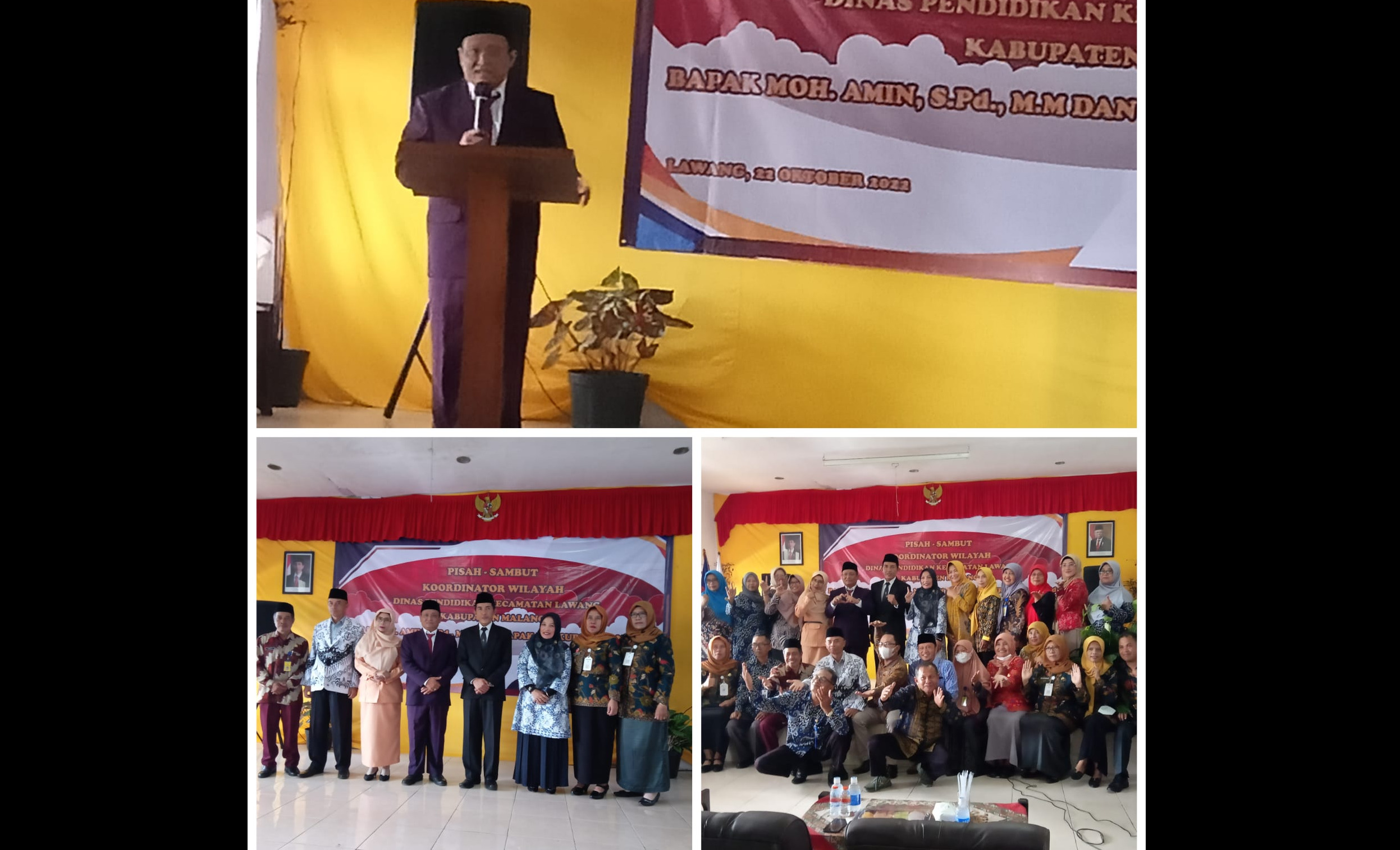 Pisah sambut dilaksanakan di Aula Kantor Wilayah Dinas Pendidikan Kecamatan Lawang Kabupaten Malang, dihadiri Kepala Sekolah Sekecamatan Lawang, Kepala Sekolah SDI, Paud, dan TK, Sabtu (22/9/22).