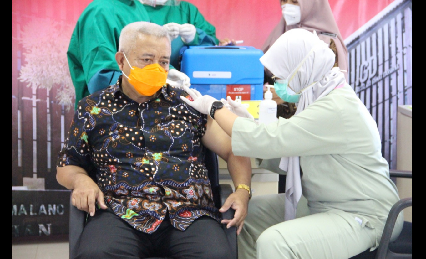 Bupati Malang Drs.HM. Sanusi. MM bersama Forkopimda laksanakan Vaksinasi Tahap II di RSUD Kanjuruhan Kepanjen lantai 4, pada Kamis (18/2/2021) pukul 10.00 s/d 11.00 wib.