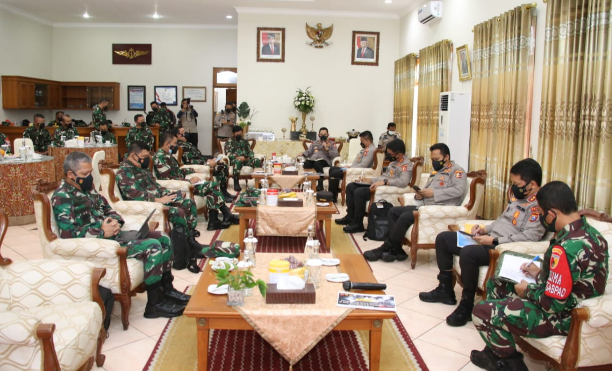 Panglima TNI dan Kapolri memberikan pengarahan kepada Pangdam V Brawijaya, dan Kapolda Jawa Timur terkait penanganan covid-19 di Jawa Timur, pada Jumat (11/6/2021) di Lanudal Juanda, Sidoarjo.